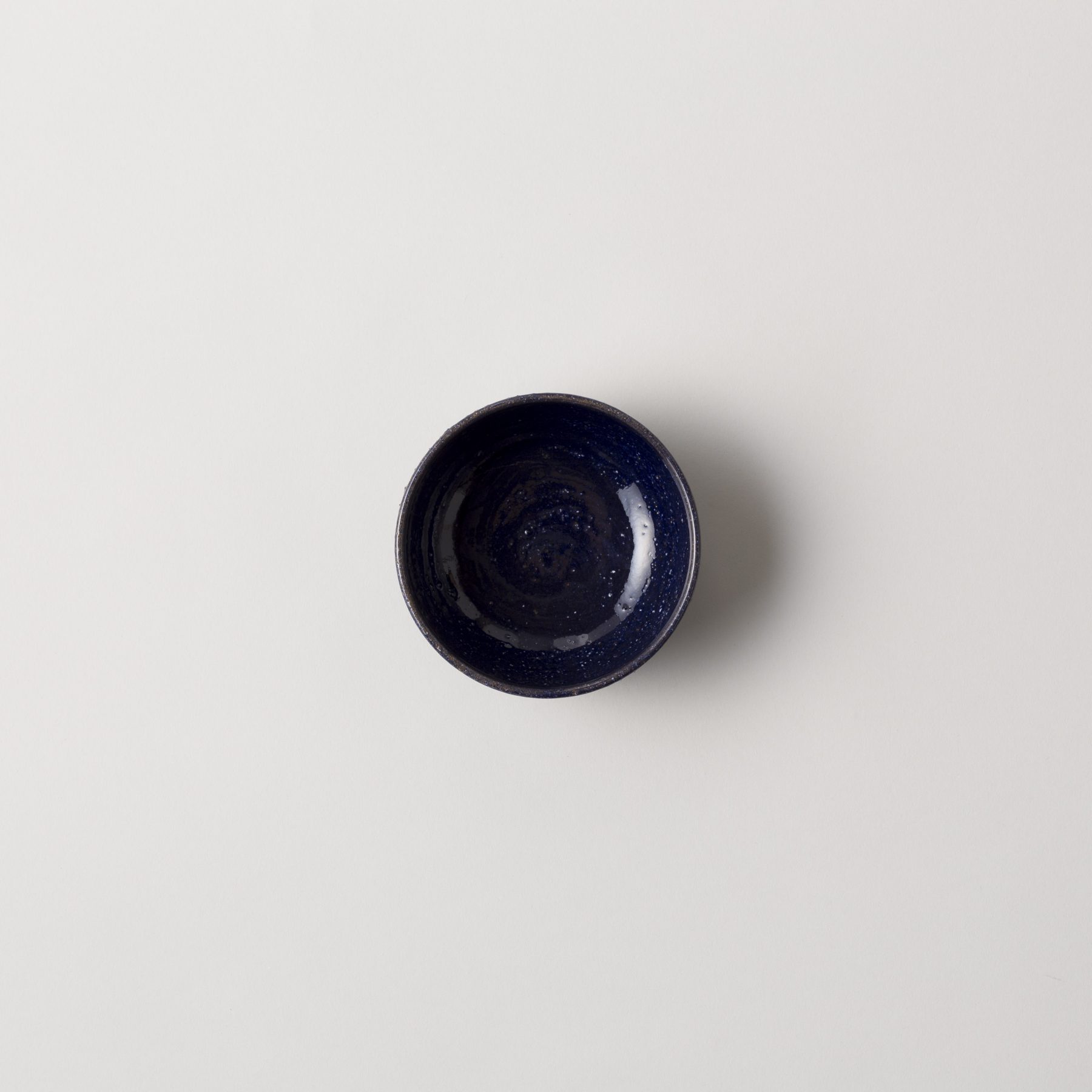 粗い土肌に瑠璃釉(るりゆう)を施したシリーズ。成型後に水で溶いた砂入りの陶土を筆で塗って、ひと手間加工を加えることで、深い濃紺の釉薬の中に白い砂の粒が浮かび上がり、風合いある豊かな表情を生み出しています。